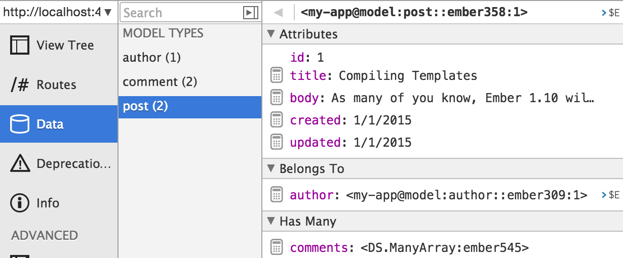 You can inspect your models by clicking on the Data tab. Check out Building a Data Custom Adapter below if you maintain your own persistence library. When you open the Data tab, you will see a list of model types defined
